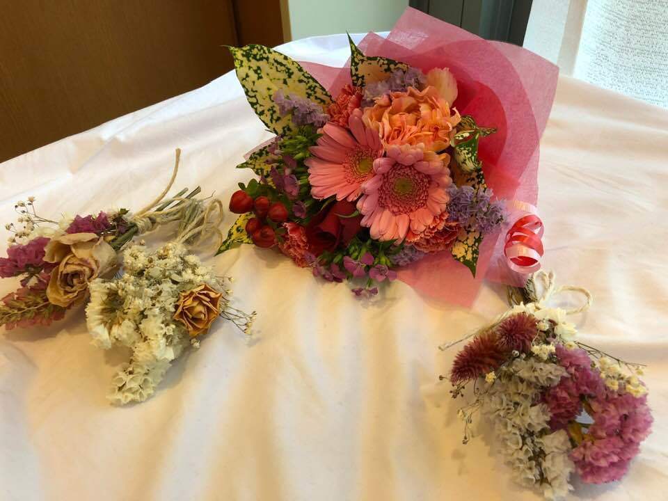 【ゲストへのご挨拶】買ってきたドライフラワーだけでなく、生のお花からハンドメイドしましょう^^毎日町で見かけたお花を観るのも楽しくなりますよ^^心のこもったプレゼントにもなります!頂いたお花をそのくださった方にハーバリウムにしてお返ししたらびっくりすることでしょう!!ドライフラワーの作り方や道具の使い方、お花の入れ方なども学べます!プレゼントにしたい方にはラッピングもその場でできます!大きいボトルと小さいボトル、1本ずつ作ります。全部出来上がったら記念撮影をして、ティータイム♬タイミングが良ければ手作りスイーツも食べられるかも~^^お楽しみに^^【料金に含まれるもの】花材・ガラスボトル・メッセージカード・ラッピング用品・プレゼント用紙袋は有料(100円)・お茶・お菓子