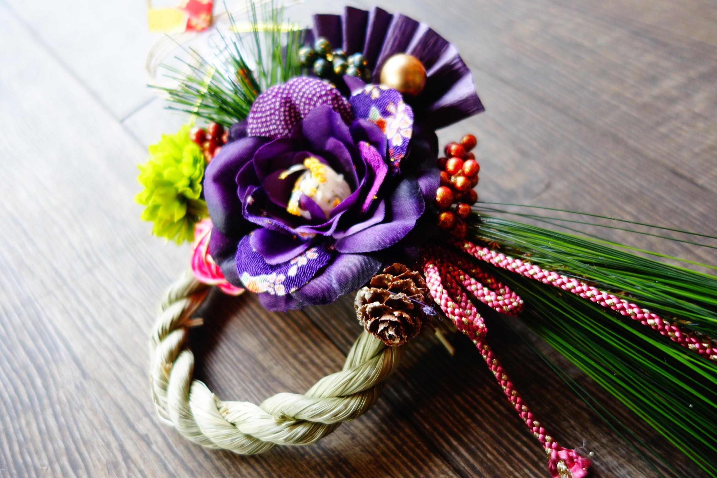 人気のアーティフィシャルフラワーをしめ縄に飾って、世界にひとつだけの新春飾りを制作します。