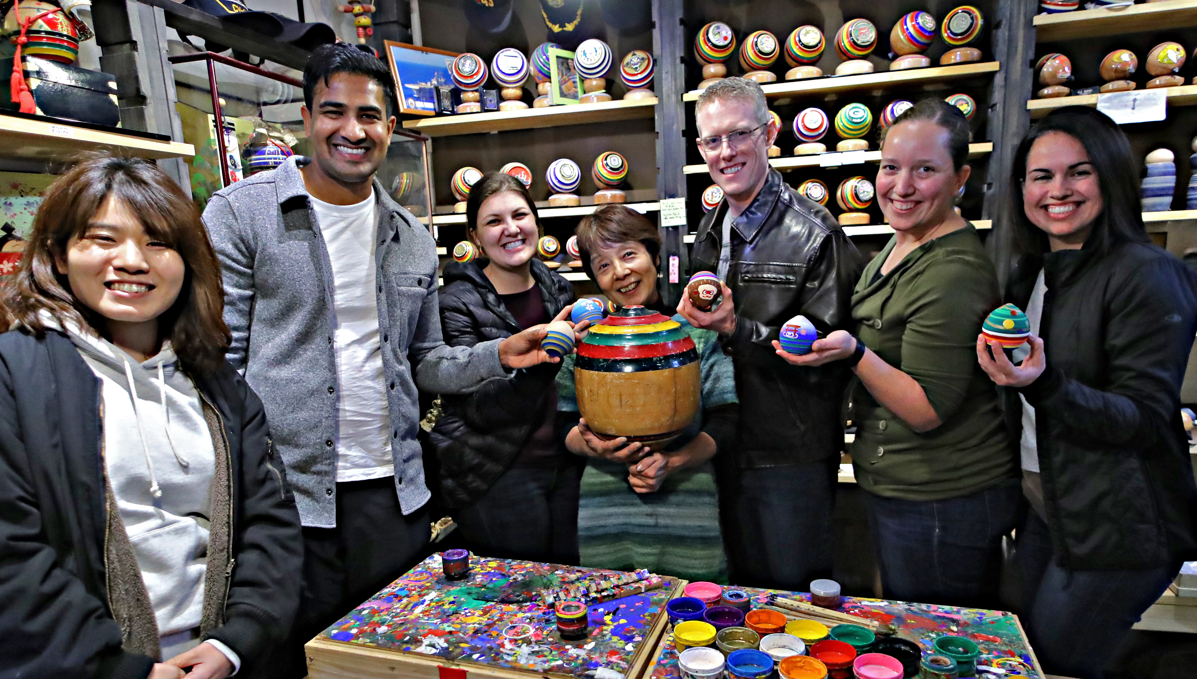 そんな彼らが興味しんしんに訪れるのが、この佐世保独楽本舗です。