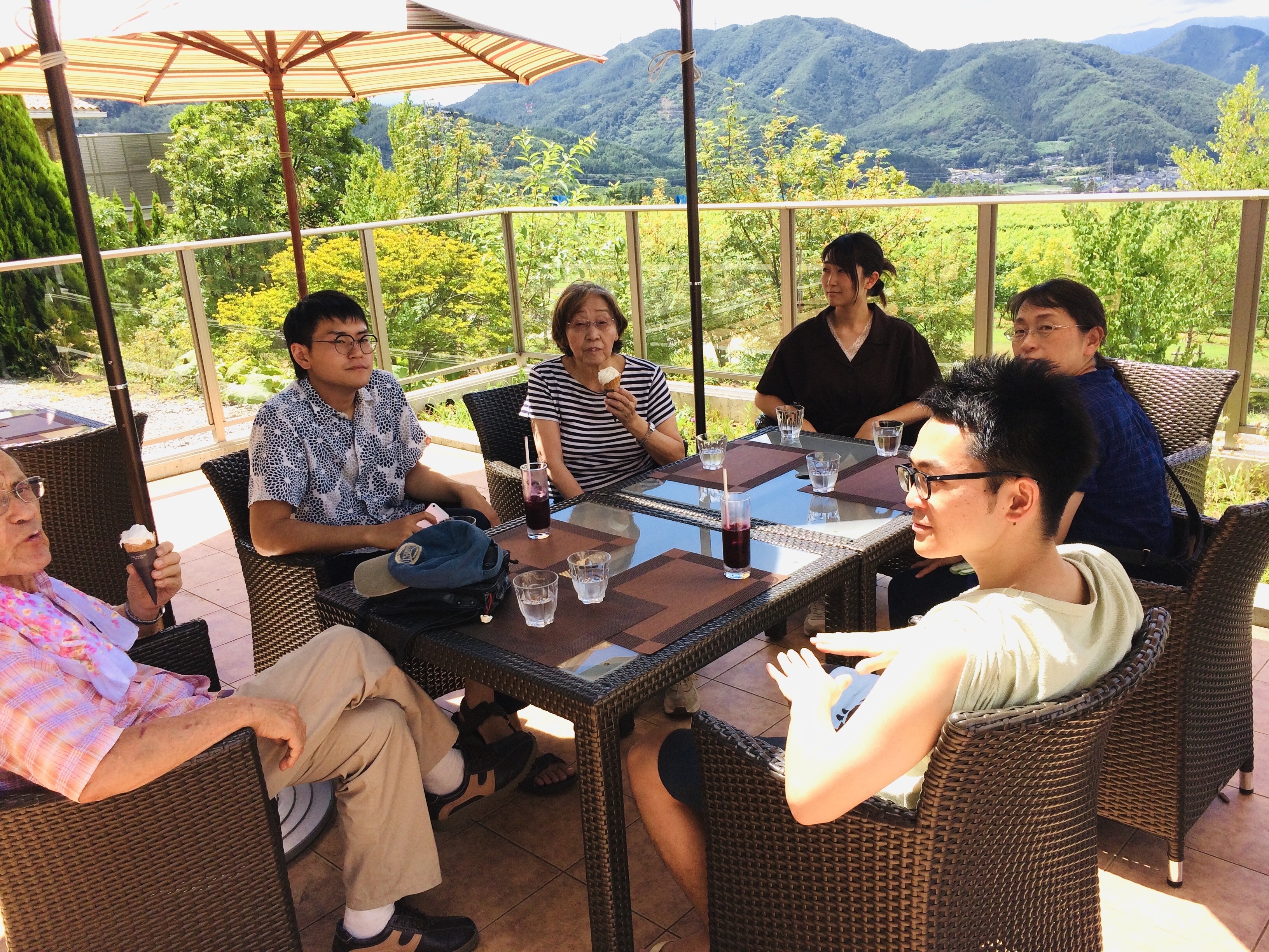圃場を散策するもよし、ウェルカムドリンクとしてワインの試飲を