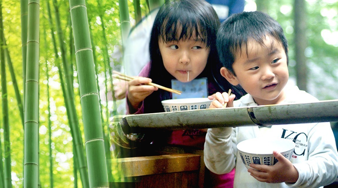 豊富に自生する竹で手作りの器を使って、本格流しそうめんをお楽しみください。