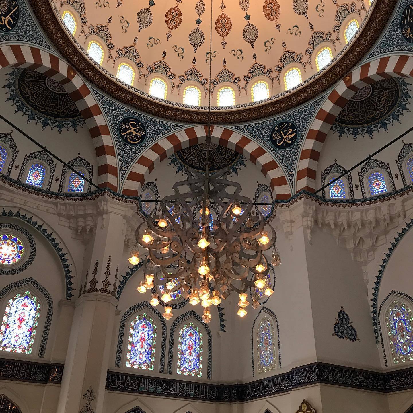 代々木上原駅で集合して東京ジャーミー(モスク)まで案内します。1917年のロシア革命時に中央アジアに住んでいたイスラム教徒が日本に移住したあとに東京ジャーミーが建てられました。外観と内装がとても綺麗で見るものは誰でも魅了するほどの美しさで日本最大のモスクとして有名です。モスクの礼拝所を見学したあと、イスラム教と、見学頂くモスクの歴史について解説します。