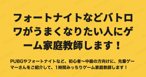 PUBGやフォートナイトなど、初心者〜中級の方向けに、先輩ゲーマーさんをご紹介して、1時間みっちりゲーム家庭教師します!・同じフィールドでプレイしながらサポート・女性ゲーマーが親切に教えてくれますので、女性でも安心まずはお気軽にご連絡ください〜。#PUBG #ゲーム #フォートナイト #スプラトゥーン2