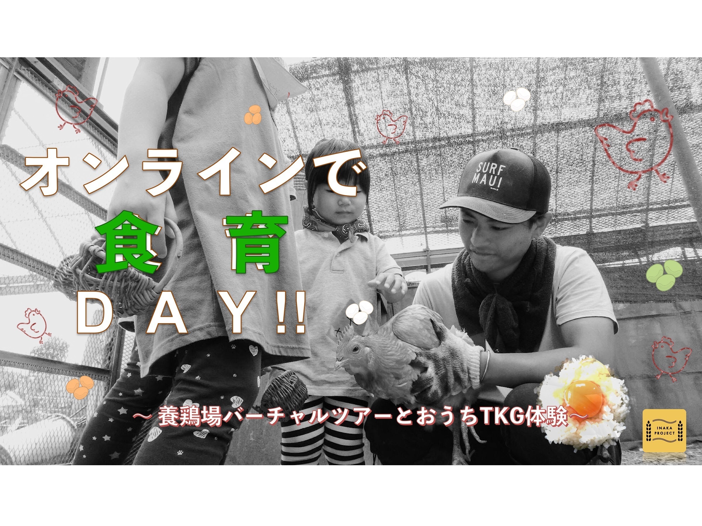 埼玉で活動する INAKA PROJECT です♪ 今回は、おうちに居ながら楽しめる、ひみつの養鶏場のツアー & シェアごはん会を開催するよ^^ みんなで究極の卵かけご飯を楽しもう♪この授業の先生はおなじみ…"隊長"!体験当日までに宿題もいっぱいだしちゃいます、お楽しみに〜!!