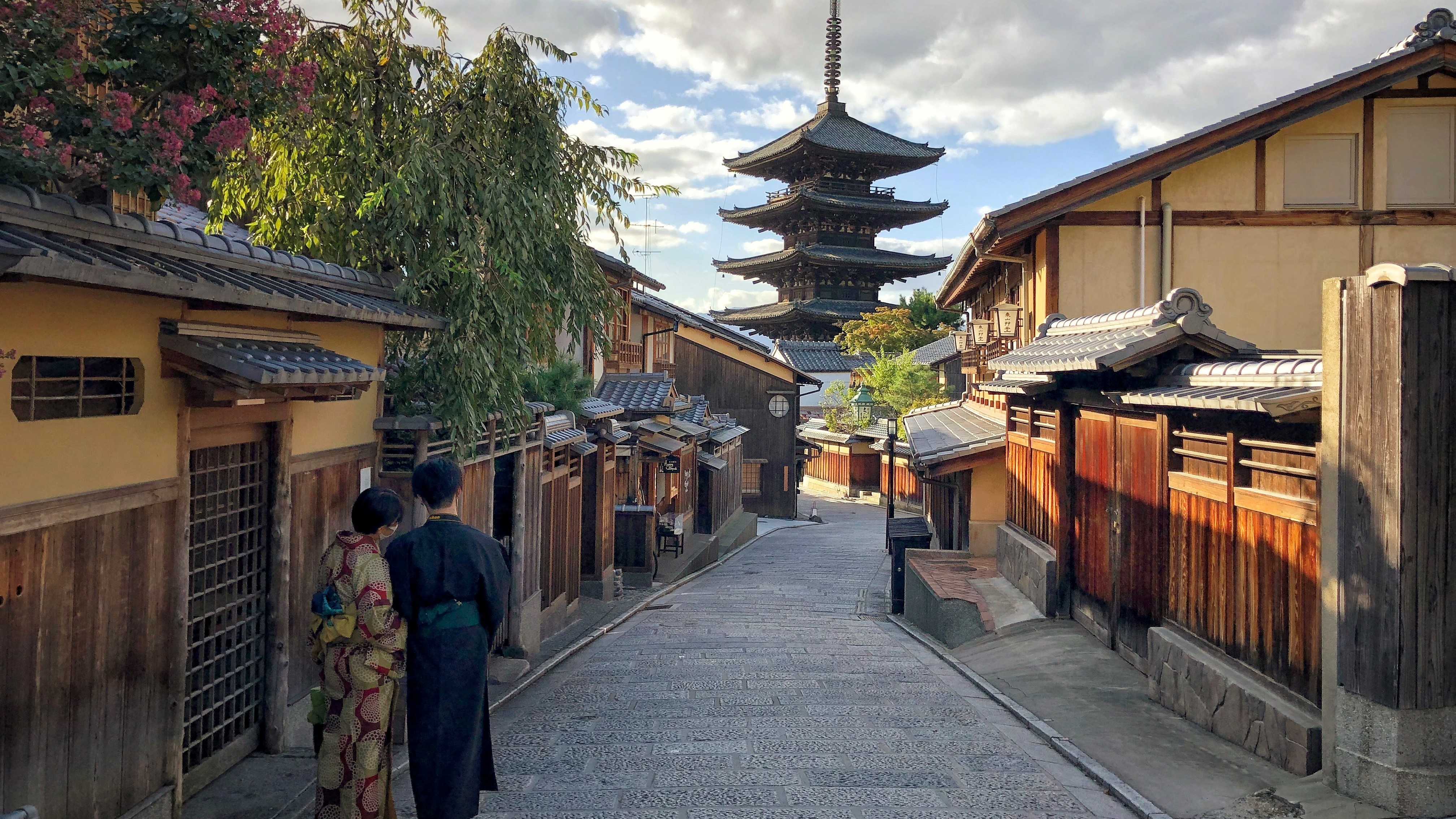 八坂通りから東山エリアへと入っていきます。伝統的建造物保存地区のアイコン的存在の「八坂の塔」