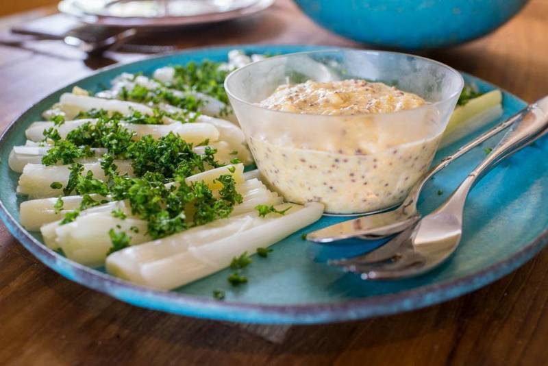 蒸すことで甘みが引き出された長ネギに、ヴィネグレットソースをかけていただく、フランスではとてもポピュラーなメニューです。パリのサンジェルマン大通りにある老舗ブラッスリー「リップ」の一皿からインスパイアされた濃厚なソースとともに。