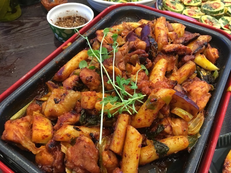 冬ソナで有名な春川(チュンチョン)の名物鉄板料理です。鶏肉とキャベツやサツマイモ、トッポッキなどを甘辛いソースで炒める料理です。