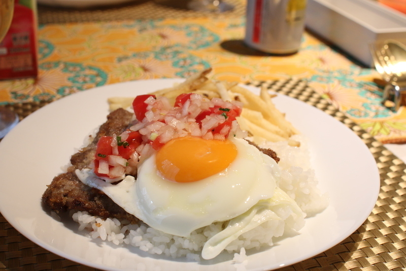 === シルパンチョ(牛カツ、フライドポテト、目玉焼き、ご飯のワンプレート)