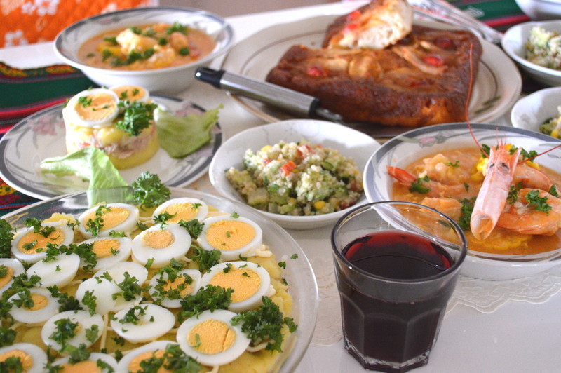 ペルーの代表料理といえば、見た目もおしゃれなポテトサラダ「Causa」です。作り方はとてもシンプルなのでホームパーティーなどに大活躍の料理です。他にも、キヌアのサラダやエビのスープなど普段から作れる料理ばかりなので、ぜひぜひ一緒に作って、お家でもペルー料理を楽しんでみてください!【レシピ】=== Chichamorada(紫トウモロコシのジュース)Chicha morada 紫トウモロコシ、シナモンスティック、リンゴ、パイナップル、レモンと砂糖、で作っているペルーのジュースです=== Causa de atún(ペルー風ポテトサラダ)ペルー風ポテトサラダマシューポテト,ツナ、玉ねぎ、レモン、他=== Ensalada de quinua(キヌアのサラダ)キヌアのサラダペルーのキヌア、と好きな野菜。レモンドレッシング。=== Chupe de camarones(エビのスープ)エビのスープ=== Pudding de manzana(りんごのケーキ)ぺるー風リンゴのケーキ