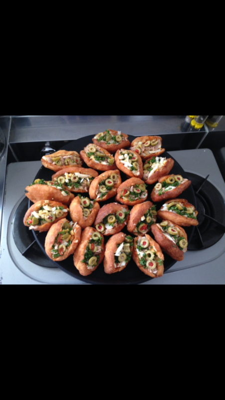 Fricasses are a traditional fried bread from Tunisia it is made with tuna,egg potato,olive ,harissa and parsley