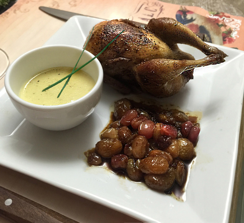 === Cailles aux raisins et cognac (Quail with grapes and cognac )(うずらのコニャックとレーズン焼き)