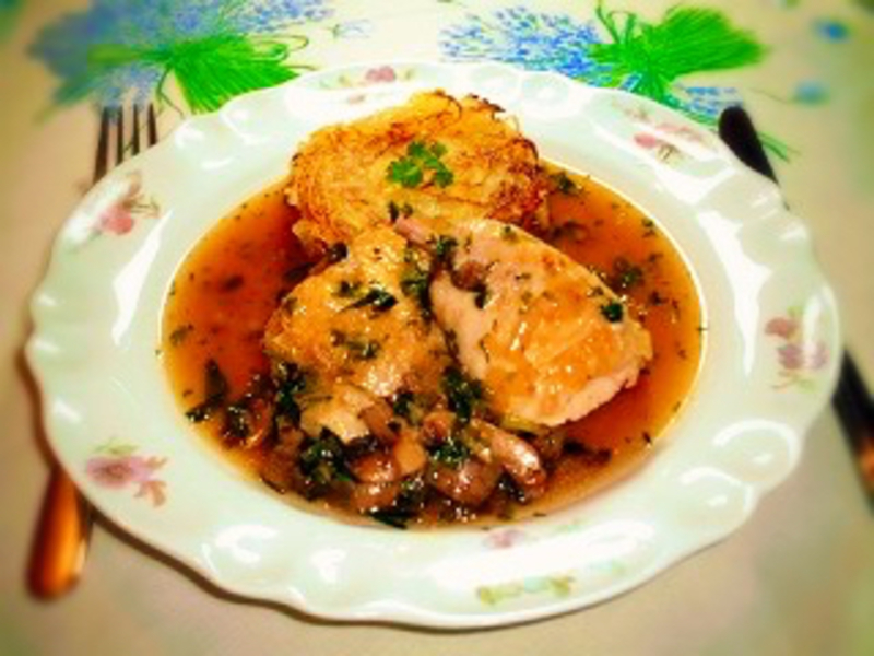 === Poulet sauté aux champignons et estragon(タラゴンハーブソース、きのこの鳥炒め)