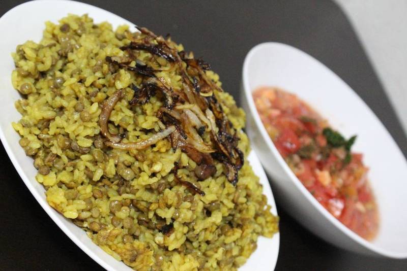 A healthy dish that consists of lentils and rice, that fits perfectly with the tomato salad. Served along with yogurt and pickles.