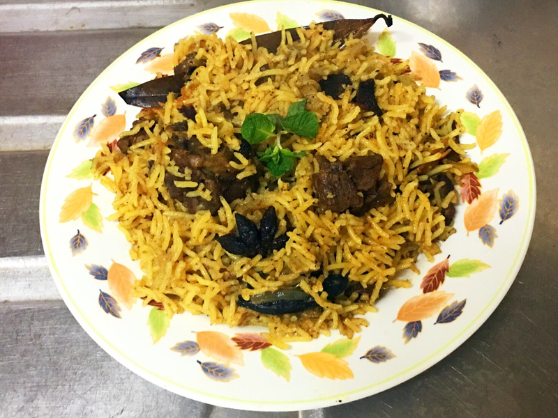 Hyderabad biryani is one of India's most famous biryani. Some say biryani is synonymous with Hyderabad. It is made with basmati rice , spices and goat . Popular variations use chicken meat instead of goat meat . Mutton biryani is cooked with goat meat . Here the goat meat is sautéed with various spices , onions , green chillies and then basmati rice is added and cooked on a very low flame for 30-40 minutes in pressure cooker for a fragrant and aromatic flavour .