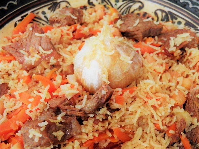 牛肉、インド米、干しぶどう、干しあんずと本格ウズベキスタンスパイス入りピラフ