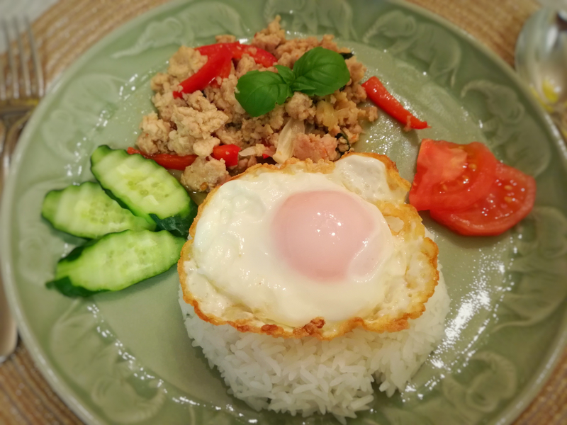 豚または鶏のひき肉をメインに、たっぷりのにんにく、唐辛子、バジルと一緒に炒めた、フライパンひとつでパパッと出来るお料理です。