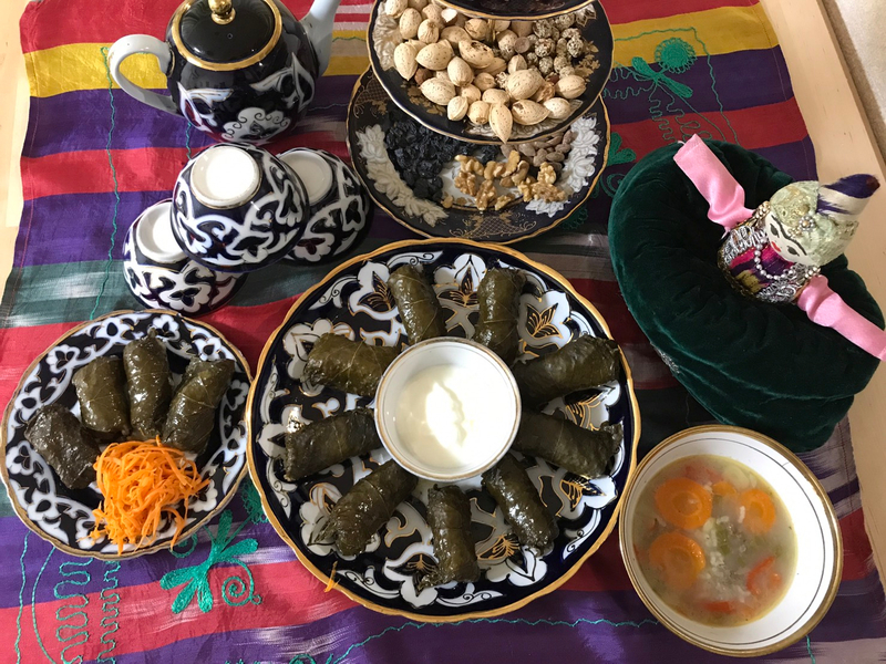ウズベキスタンの実家にはぶどうの木があり、夏はおいしいぶどうを、そしてその葉を使った『ドルマ』を食べる伝統があります。