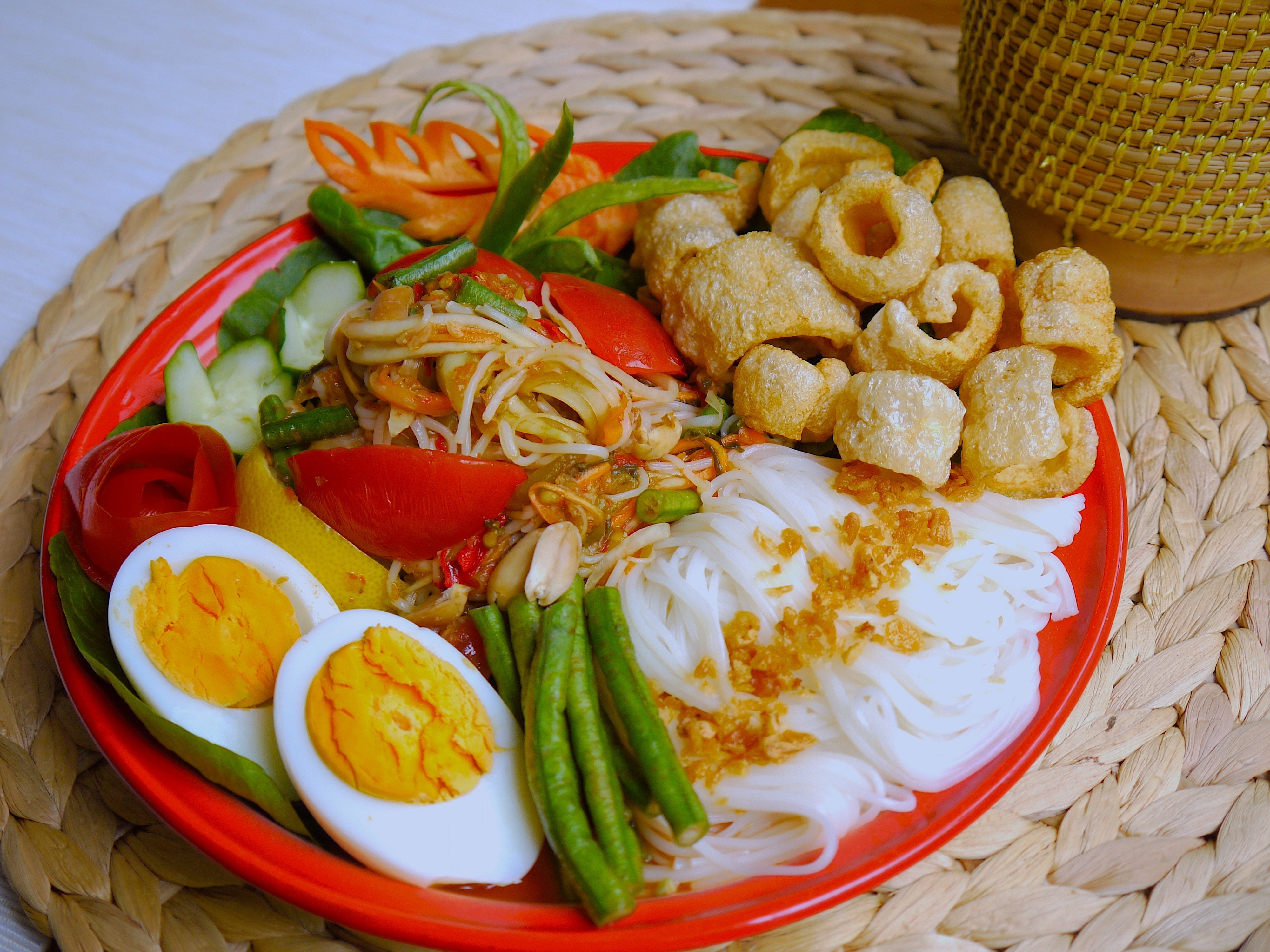 ・Salad : Northeastern Style Spicy Papaya Salad with Crispy fried Pork Rinds(お盆のソムタム(ソムタム・タート))