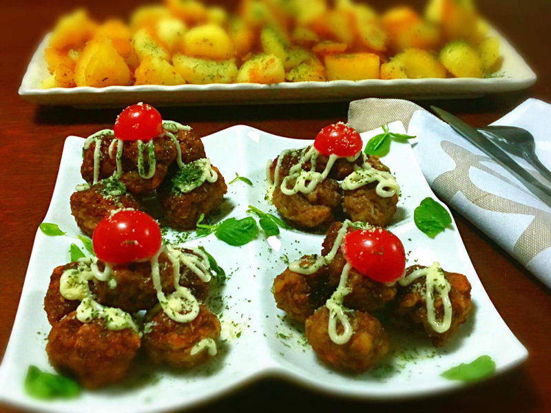 Meatballs sauteed in oil mixed with herbs. This is very famous dutch recipe