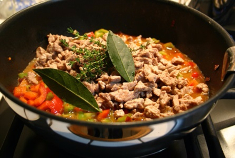 柔らかい仔牛肉とエスプレット(唐辛子)、ジャガイモのシチュー