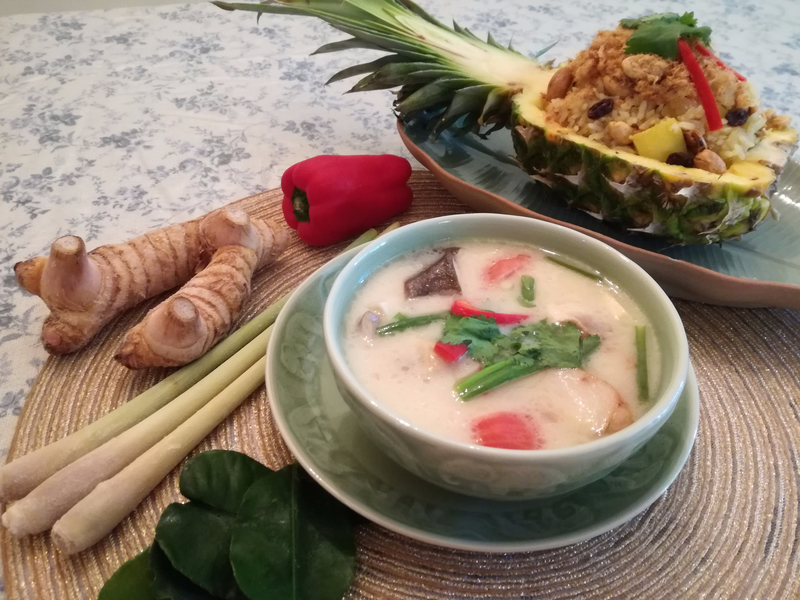 トムカーガイはトムヤムクンと並びタイでは最もポピュラーなメニューです。すっぱ辛いココナッツミルクのスープとちょっと甘いパイナップルチャーハンは相性抜群です。