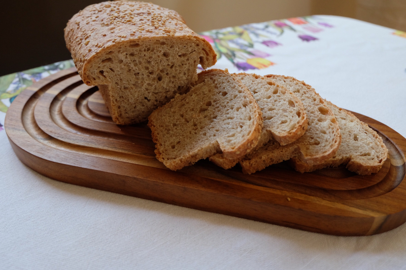 Yeast bread made with healthy spelt flour and wheat bran sprinkled with sesame seeds