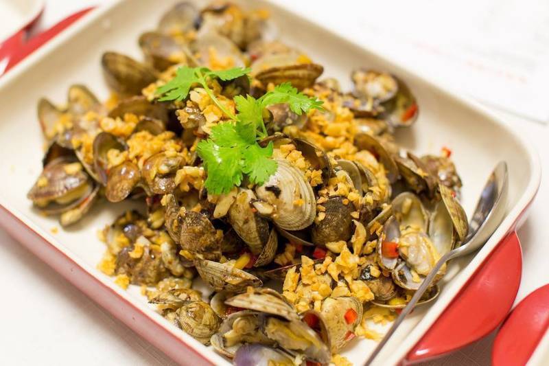 ニンニクを効かせたあさりと豆鼓(トウチという大豆の発酵食品)の炒め物です。ビールによくあいます。