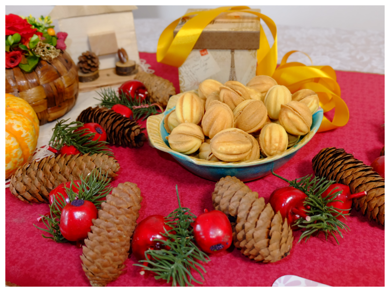 ロシアでは昔からある人気の焼き菓子、くるみクッキー(アリエシュキ)。各家庭でお正月など節目のときに作られます。参加者自身で作ったくるみクッキーはお土産になります。メニューにはくるみクッキー以外にも飲み物とブリニー(クレープ)やボルシチと手作りパンがついて、ロシアの文化を身近に感じていただけます。