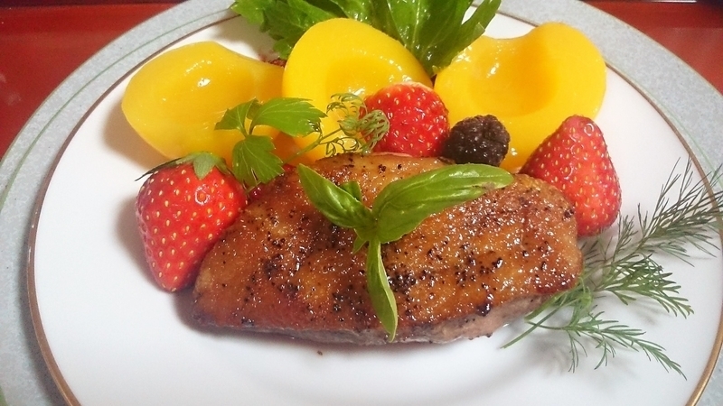 === Запеченная утиная грудка с гарниром из фруктов(オーブン焼き鴨ロース、フルーツと共に)