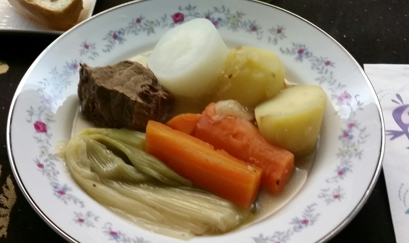 Pot au feu is traditional dish that we eat in winter .I really love this dish .and I alwsys enjoy to make it to my family【レシピ】=== Oeuf mimosa(Oeufs mimosa)Boil egg and mayonaise .ham.cucomber.tomato=== Pot au feu(Pot au feu)Beef.carots.potatoes.leek.turnip..onion.broth=== Gateau breton(Gateau breton)=== Cafe ou the(Coffee or tea)Flour.egg.butter.sugar.almond essence