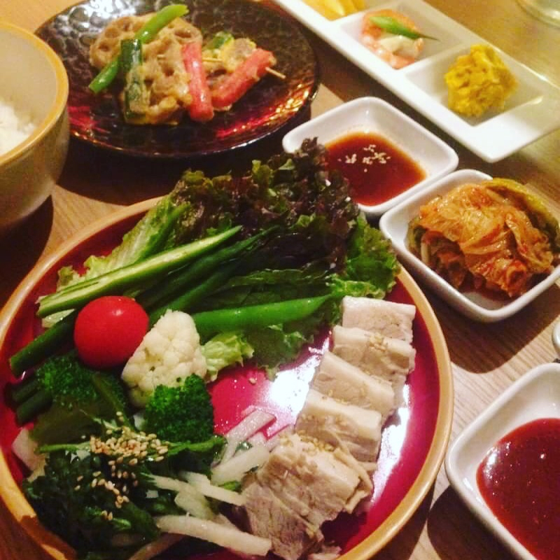 美味しくニラ、豚肉、野菜をたくさん食べれるメニューです。実家に帰るとテーブルいっぱい野菜やお肉を乗せてわいわい楽しく食べます。【レシピ】=== パリパリニラチヂミ(ニラチヂミ)パリパリチヂミで元気アップ!=== ボイルサムギョプサル食べ(茹で豚)柔らかく漢方で茹でた豚肉をネギキムチとサンチュで巻いてあー!=== 野菜たくさんビビンバ(ビビンバ)大人気!色とりどりの野菜ビビンバ