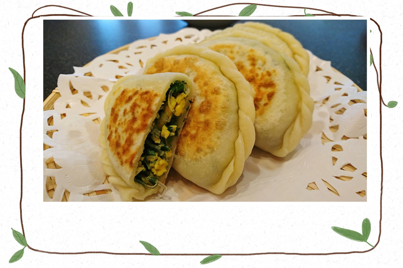 ニラ、卵、桜エビの餡にもっちりした皮で包んで、焼き上がります。皆さんと一緒に粉から作っていきます。包み方も覚えます。