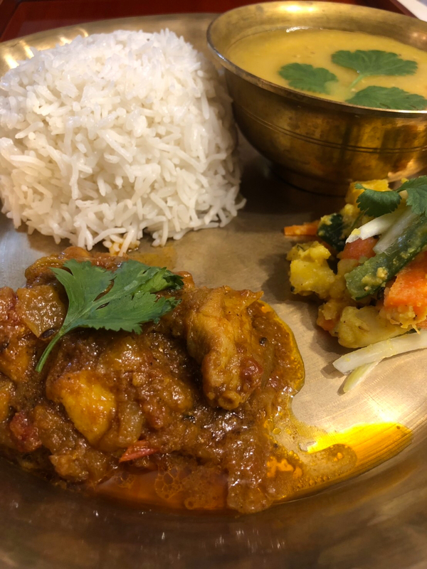 ネパール人が毎日食べている「ダルバート・タルカリ」というワンプレートの料理です。