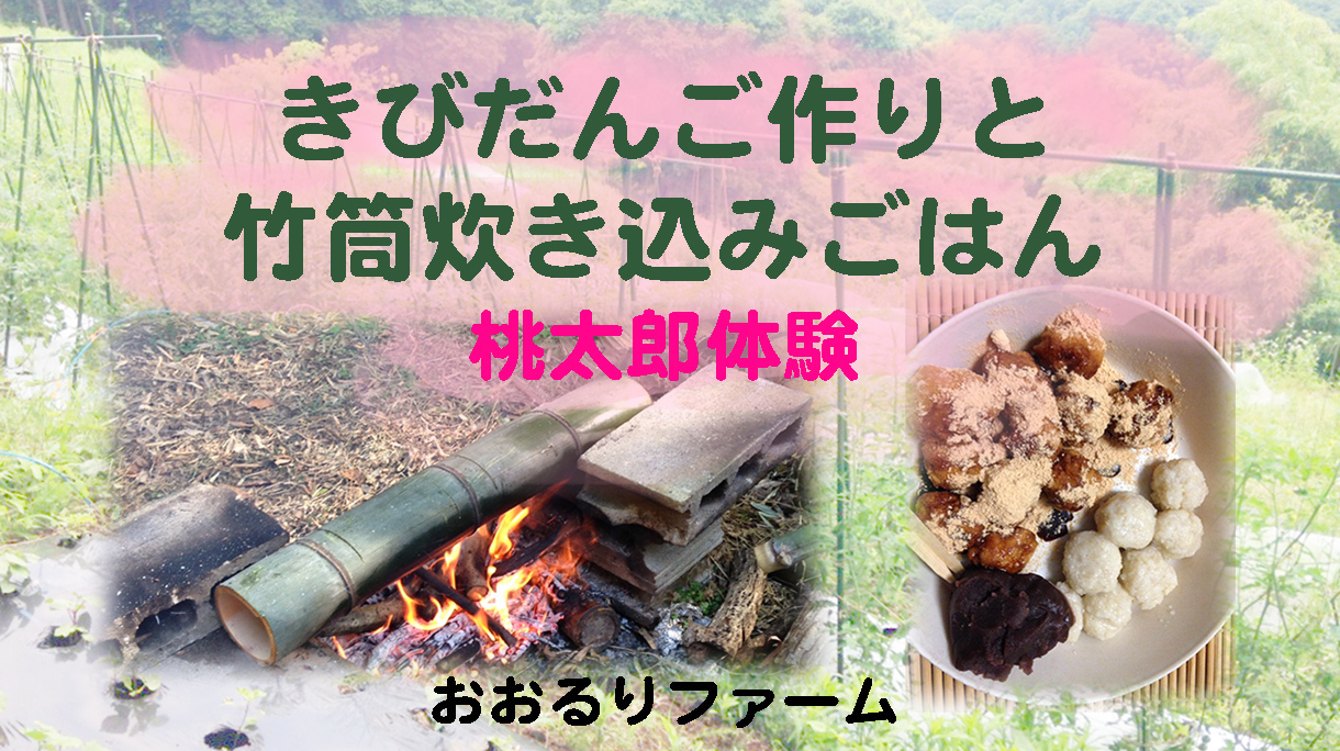 あまり見たことがないけど作ってみたい、きびだんご作り。竹筒で作る炊き込みごはん。本当に美味しいので、ぜひ体験して欲しいです。農薬・化学肥料不使用の野菜の鉄板焼きもあります。東京とは思えない、森の中の畑で、大人も子供も楽しめます。食後は、竹の工作体験も出来ます。