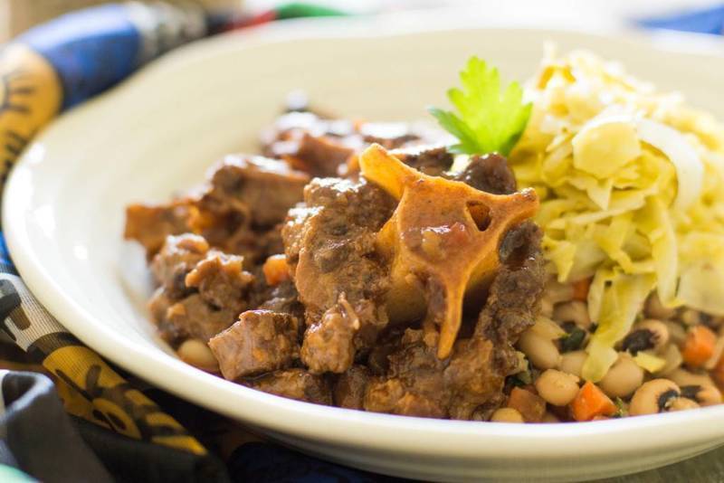 Oxtail cooked slowly for hours till tender, with a mix of vegetables in a rich sauce. This is a popular main dish for special occasions.