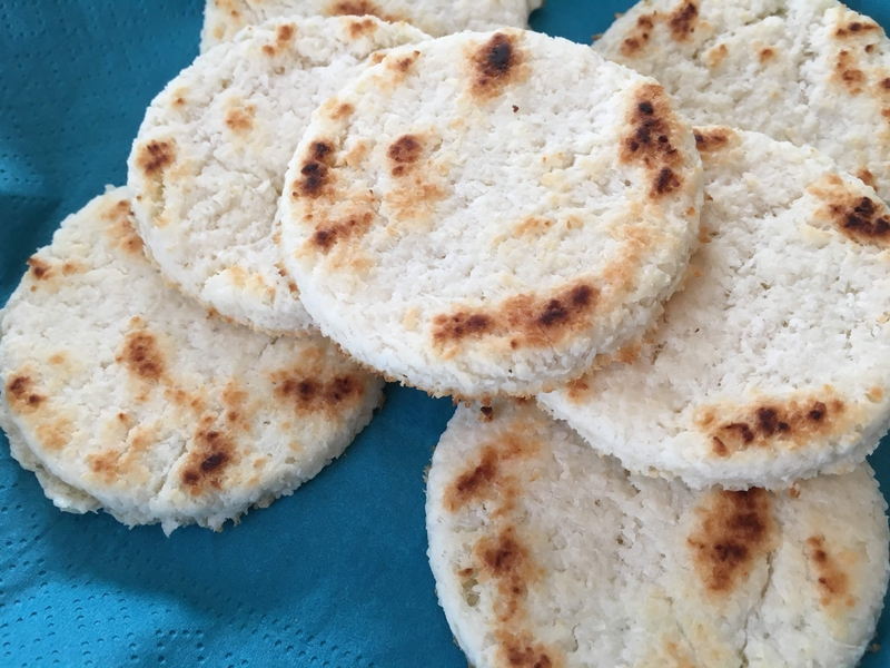ココナッツフレークと小麦粉をこねて、丸めて、薄くのばして焼いて作る、お子様が大好きな軽食です