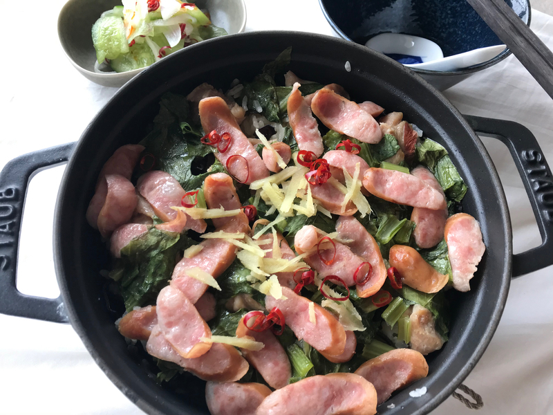 チキン、ソーセージ、キクラゲなどが入ったシンガポールの炊き込みご飯です。この一品だけで満足できるお料理です。