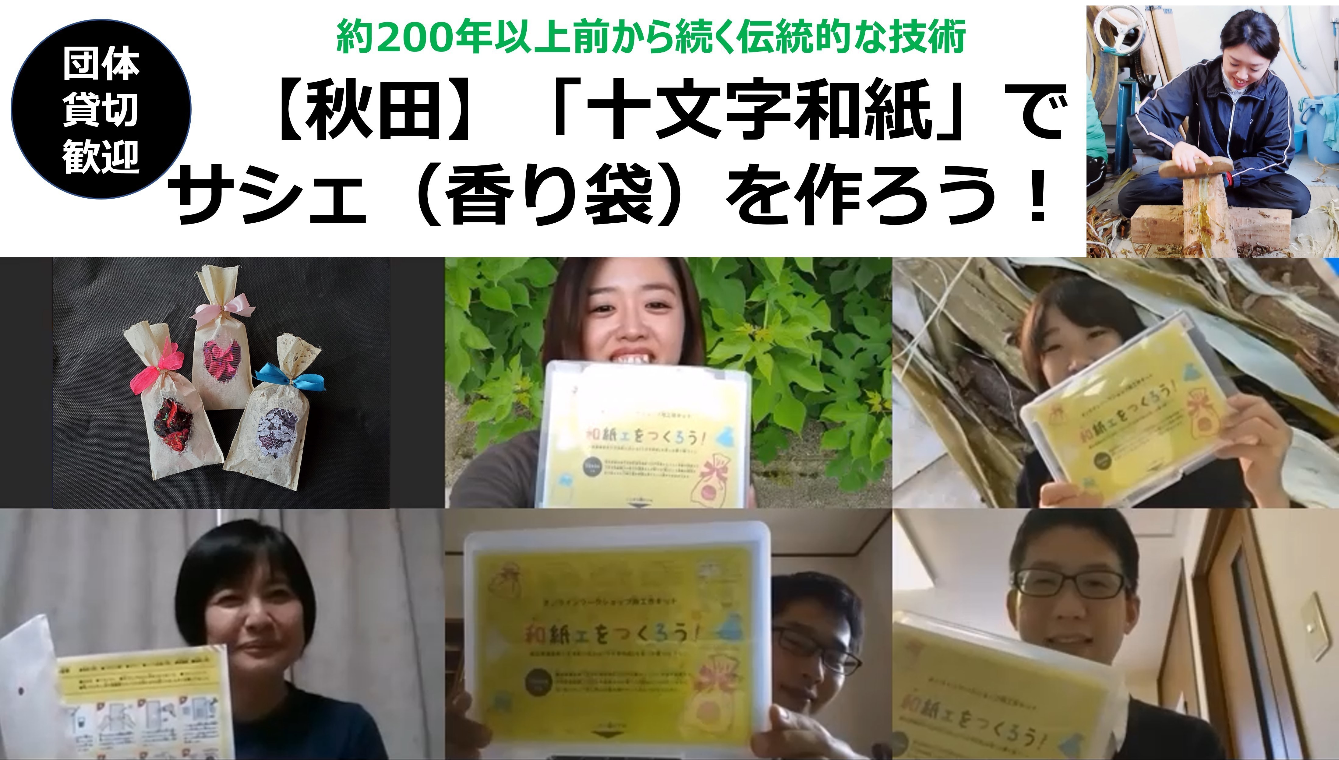 【お子様歓迎】「十文字和紙」でサシェ(香り袋)を作ろう!:オンライン