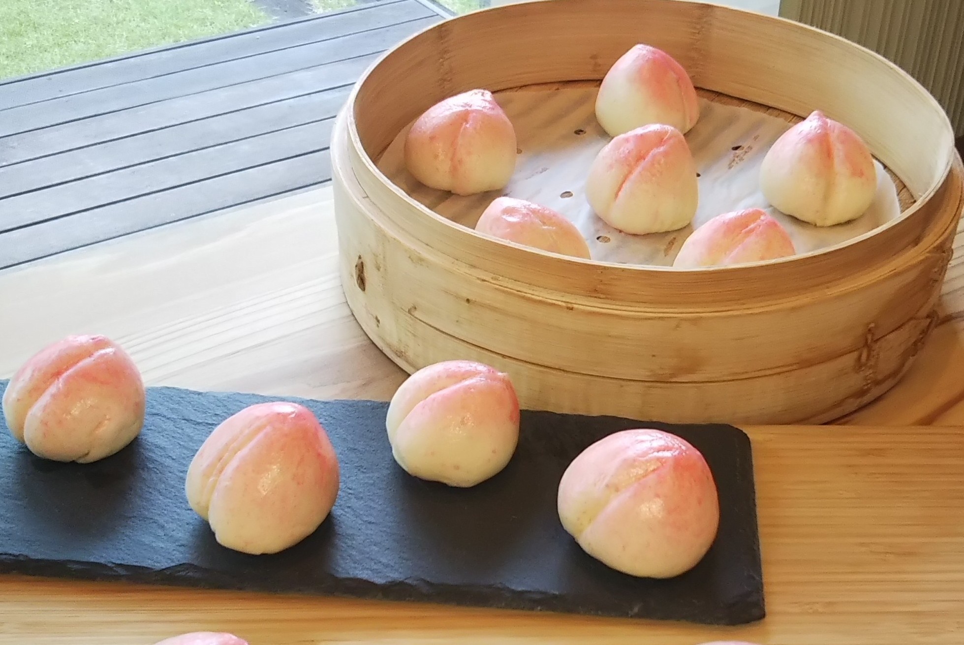 甘味系桃饅頭にさっぱりベトナム風の麺料理よく合います。