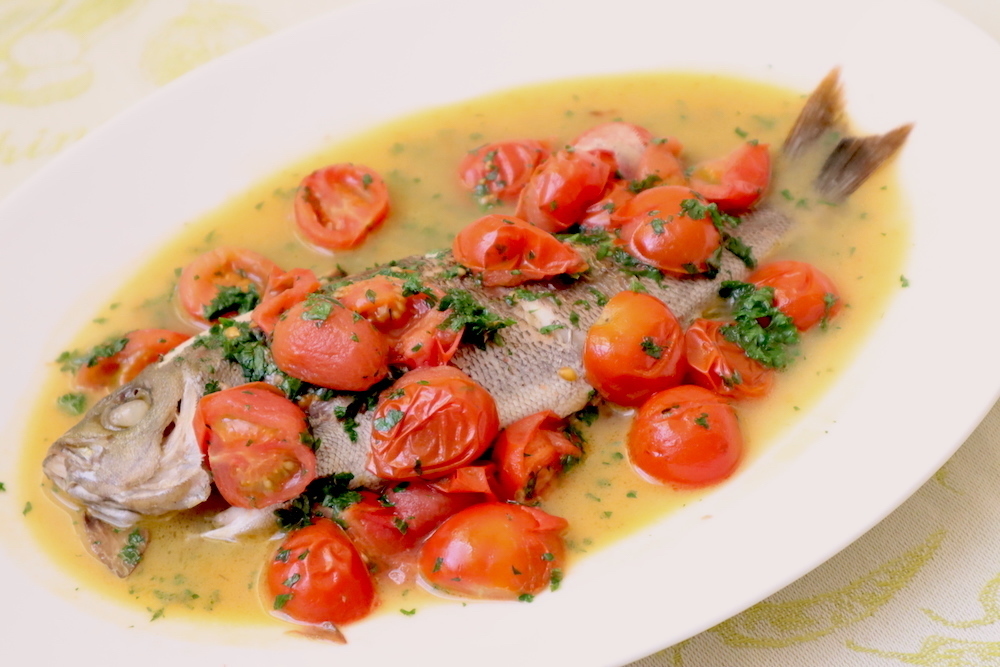 1 アクアパッツア (フライパンで作ります。お魚は一匹物でも切り身でも良いです。)