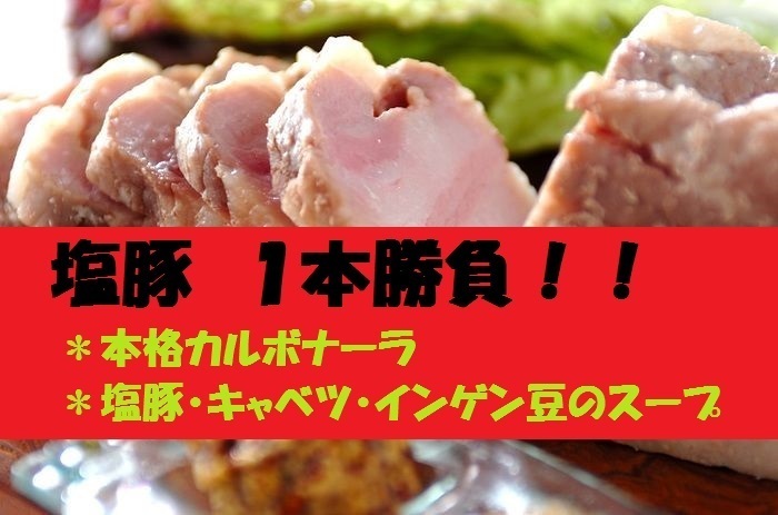 ③キャベツとインゲン豆(缶詰)と塩豚の煮込み