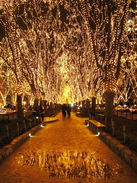 1986年に「杜の都を光の都に」のコンセプトで始まり、冬の定禅寺通りのケヤキ並木を60万球のLED電球が彩ります。
