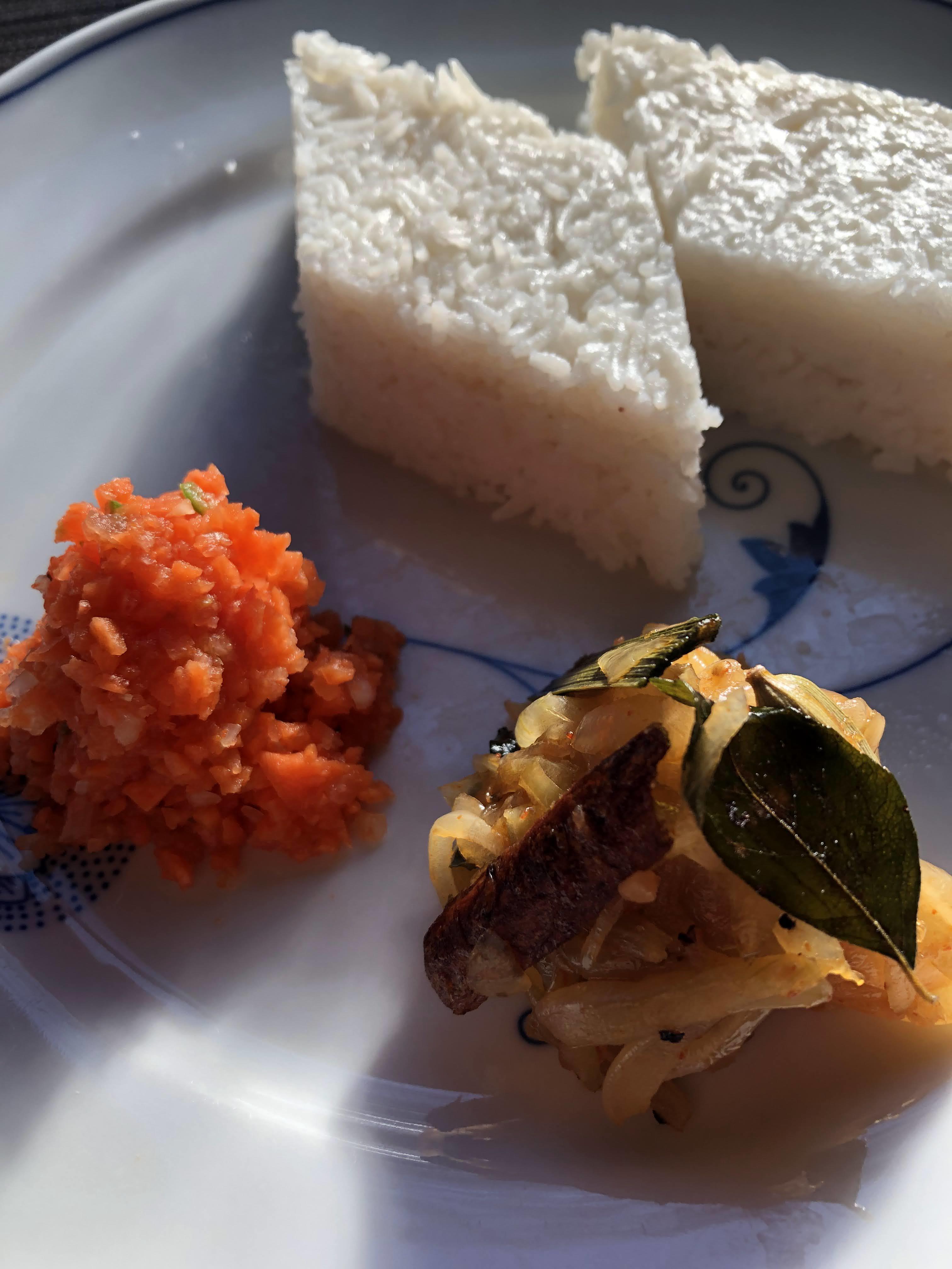 1月限定で、スリランカのお正月料理をご紹介します。スリランカではお祝い時には欠かせない、キリバット。日本でのお赤飯のような感覚で食べます。新年をキリバットを食べならが一緒にお祝いしませんか。1.キリバット(ココナッツミルクライス)2.ルヌミリス(チリパウダーや野菜で作る付け合わせ)3.シーニサンバル(玉ねぎとスパイスで作る付け合わせ)4.スリランカンロイヤルミルクティー5.ミニデザート