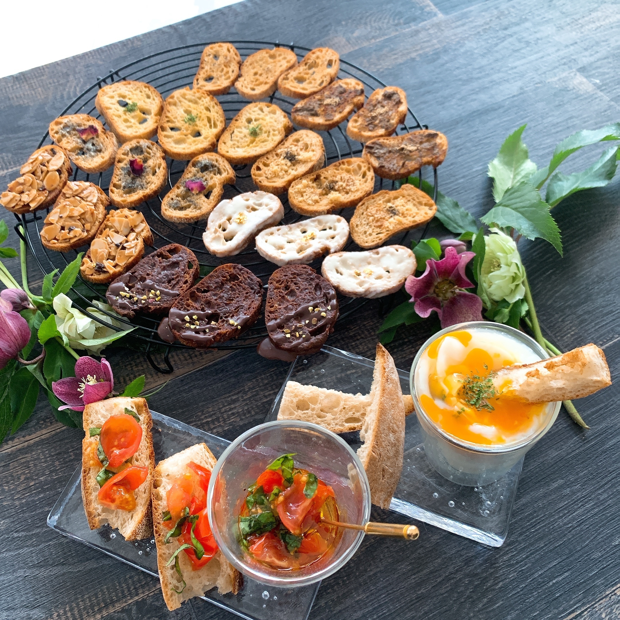 パンのカットから基本のラスク、アレンジの8種類の作り方のコツをしっかり教えます。