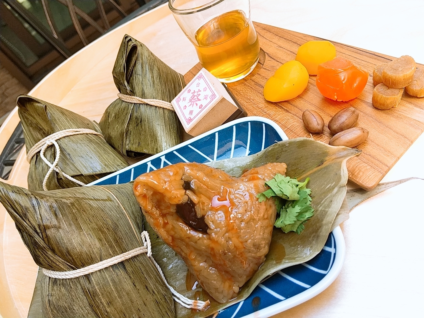 台湾から取り寄せた笹の葉で沢山の具(貝柱、干しエビ、塩卵黄、ピーナッツ、椎茸、豚肉)を包む。笹の葉の香りは粽 全体に纏う絶品。蔡先生と一緒に粽の包み方を練習して、唯一無二の粽を持ち帰りましょう!