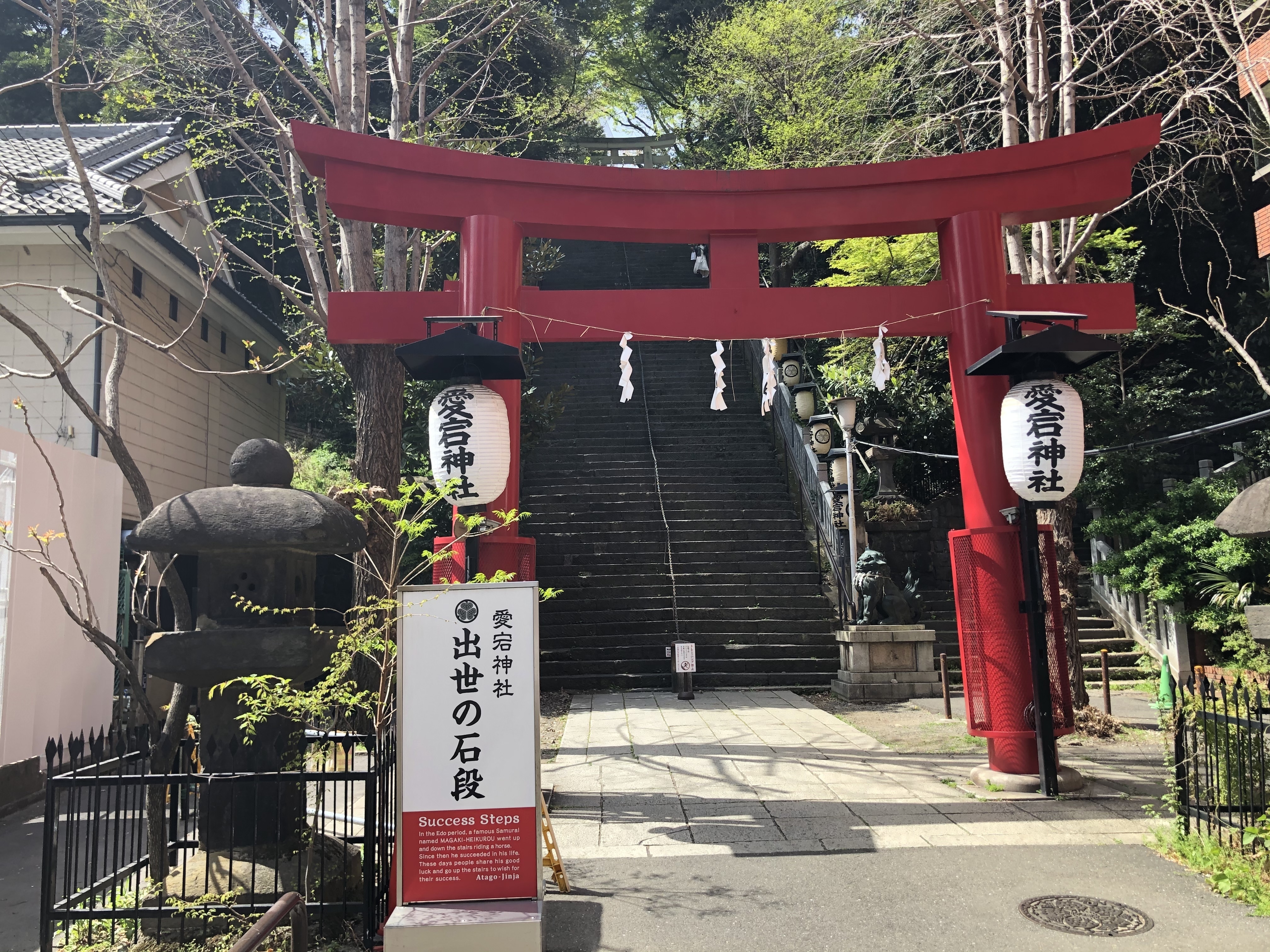 火の神:火産霊命と水の神: 岡象女命を祀る愛宕神社は、登ると出世すると言われている『出世の階段』を始め、沢山の御利益がある場所として知られており、23区内で1番高い場所としても有名です。