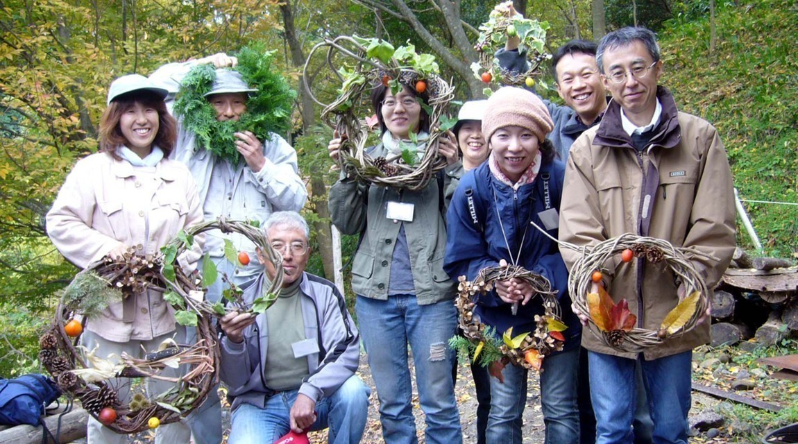 ●「里山の学校」では、そんな里山守たちと一緒に、“今時”の里山保全の取り組みにも触れながら、リース作りの材料(木の実やツル)を集めに野山へ散歩に出かけたり、秋めくカラフルな里山で過ごしながら、のんびり焚き火で焼き芋体験も楽しみます。