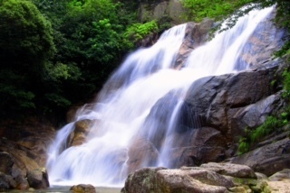 広島県の西部、世界遺産宮島のほど近く、名勝「妹背の滝」の真近で行う、滝ヨガ。