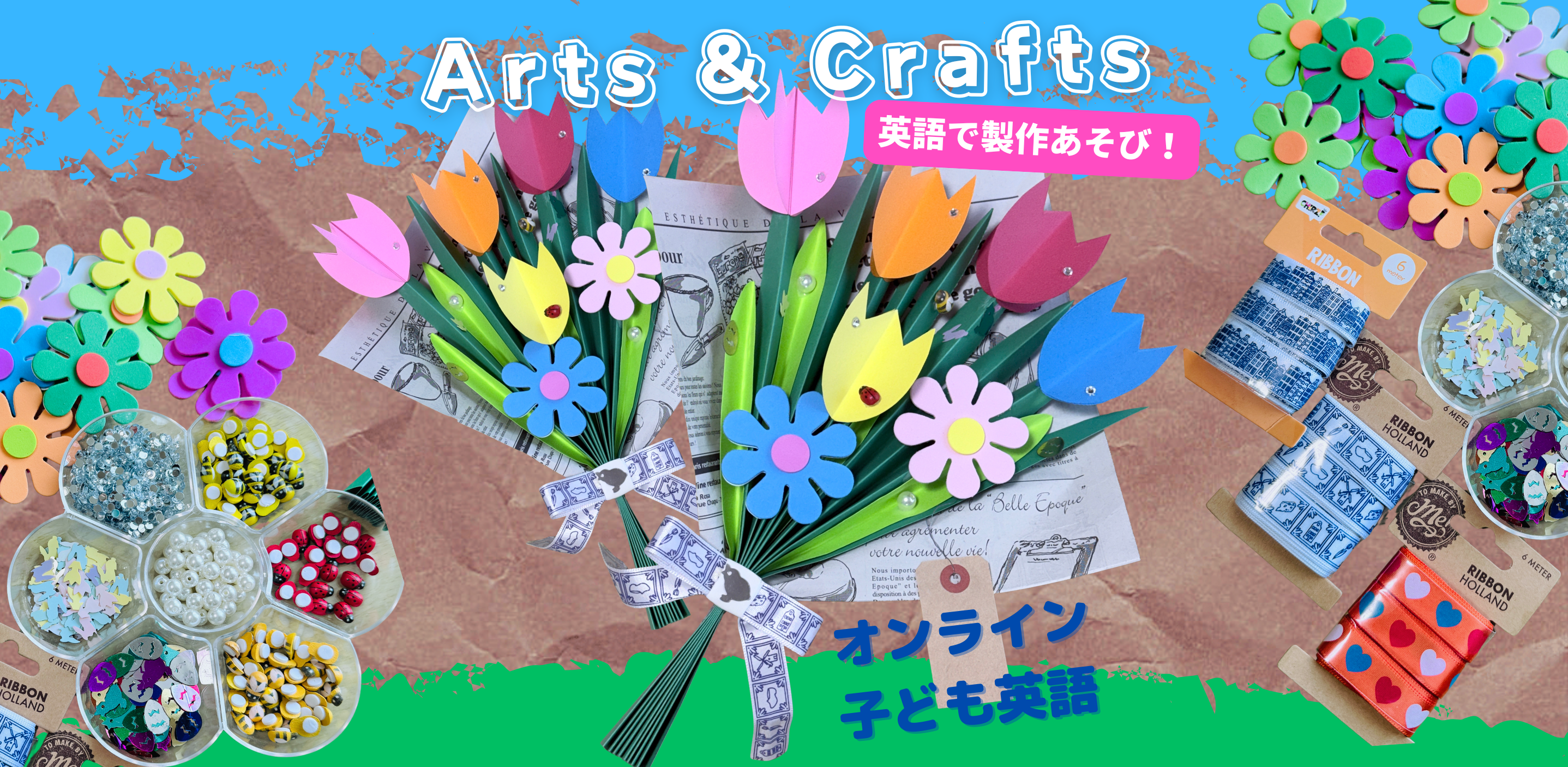 道具や材料の英語での言い方、製作の時に使う英語表現などを、オンラインで!クラフトの材料を各ご家庭に郵送致します!