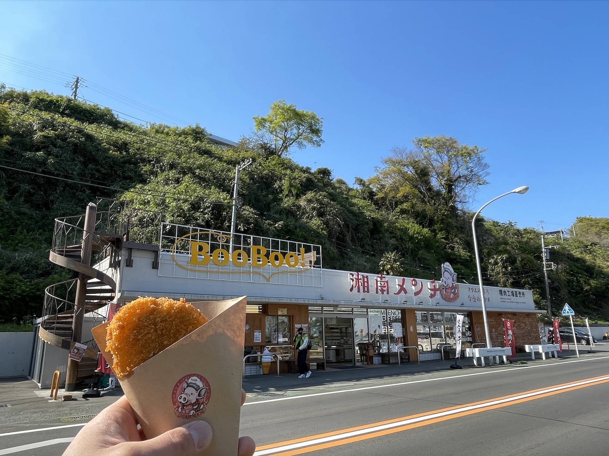 晴れていたら2Fから海を見ながら揚げたてのメンチカツを食べましょう!
